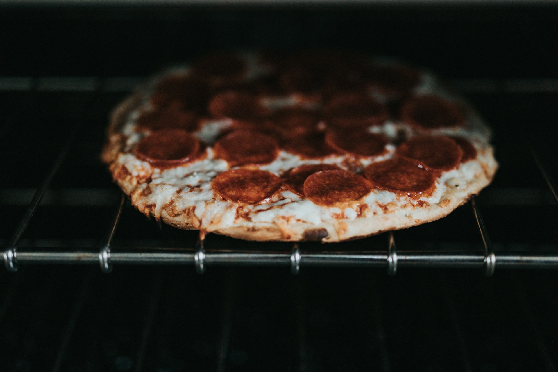 frozen pizza on oven rack